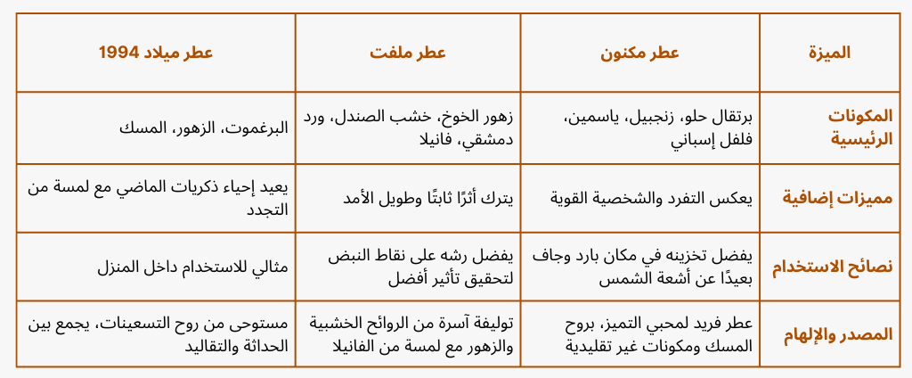 - قاعدة العطر: المسك الغني الذي يضفي ثباتًا يدوم طويلاً